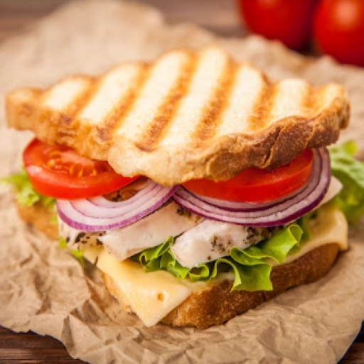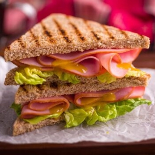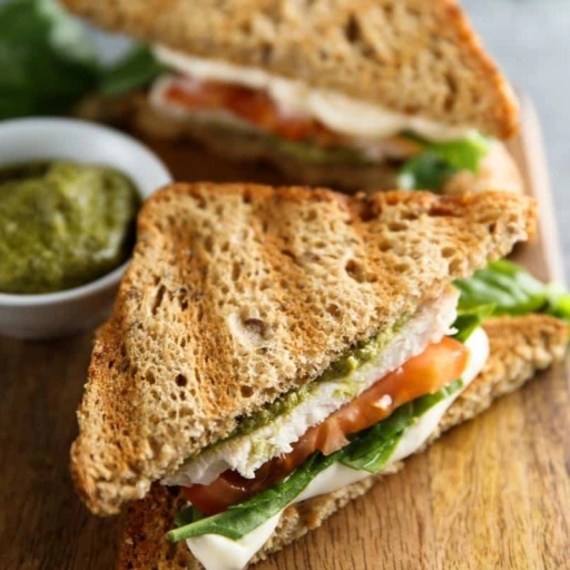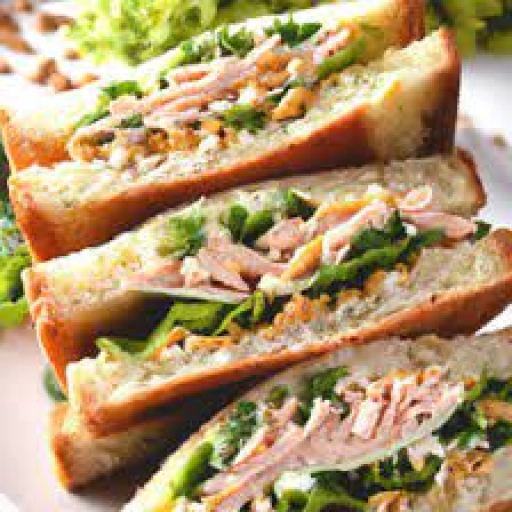 queijo canastra, presunto royale, molho pesto de manjericão e rúcula baby.