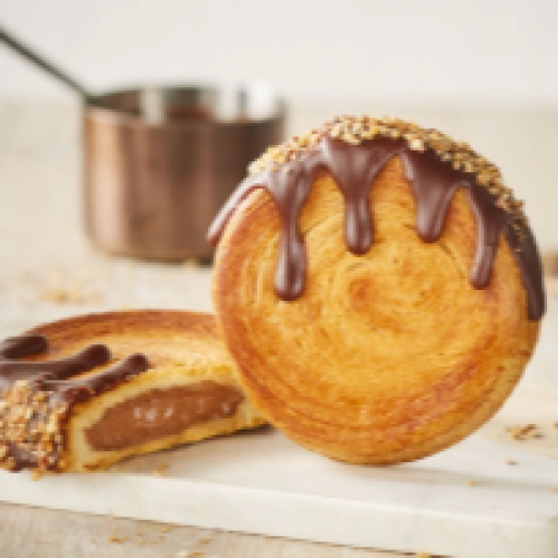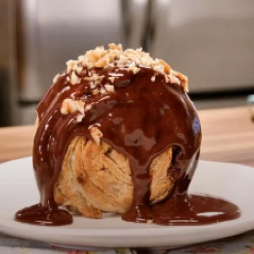 Recheio de creme de chocolate e cobertura chocolate ao leite derretido e praliné de avelã