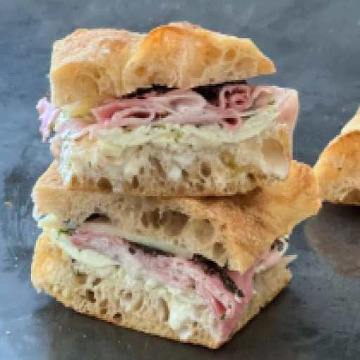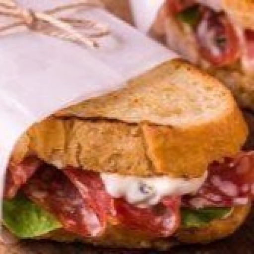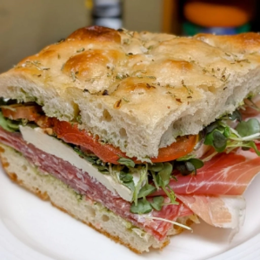 Mortadela italiana Negroni, burrata, pesto de manjericão, rúcula baby, tomate fatiado.